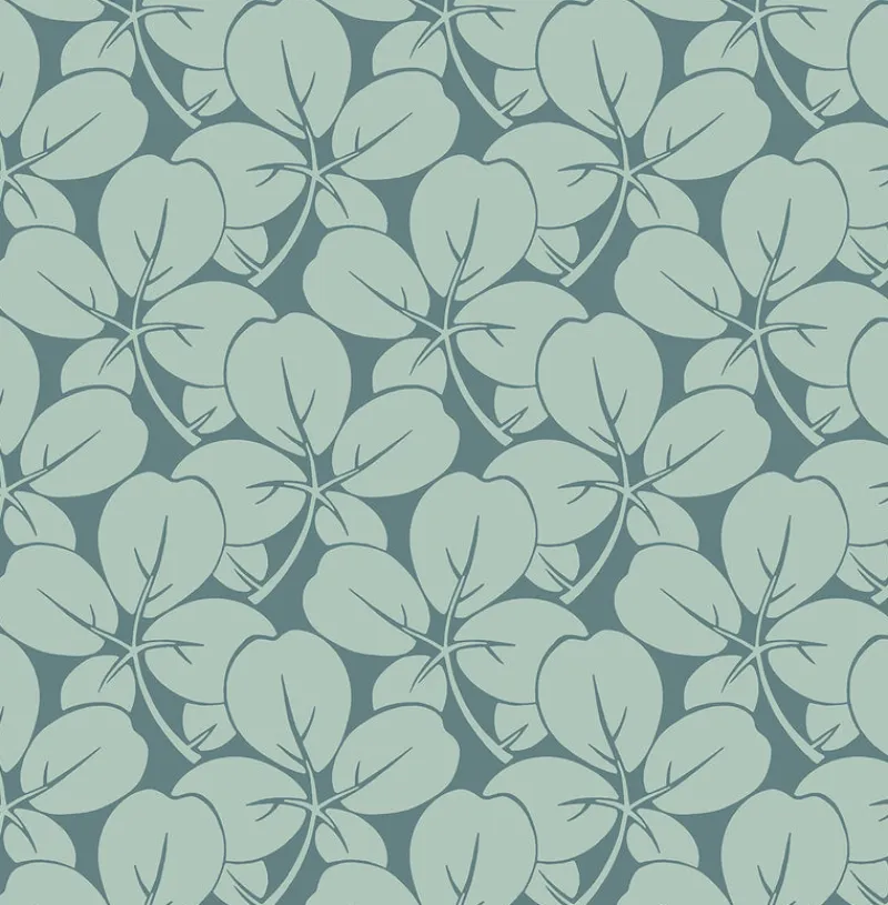 Wrap your walls in the whimsical and earthy elegance of this botanical design. Large, light teal four-leaf clovers sprout from a darker teal backdrop. Robert is an unpasted, non woven wallpaper.