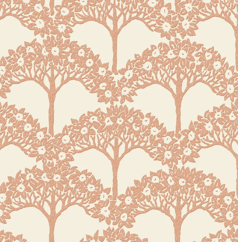 Add the ambiance of hand-carved, architectural details to your home with this gorgeous tree wallpaper. The rusty-red against creamy white adds to the design’s craftmanship charm. Dawson is an unpasted, non woven wallpaper.