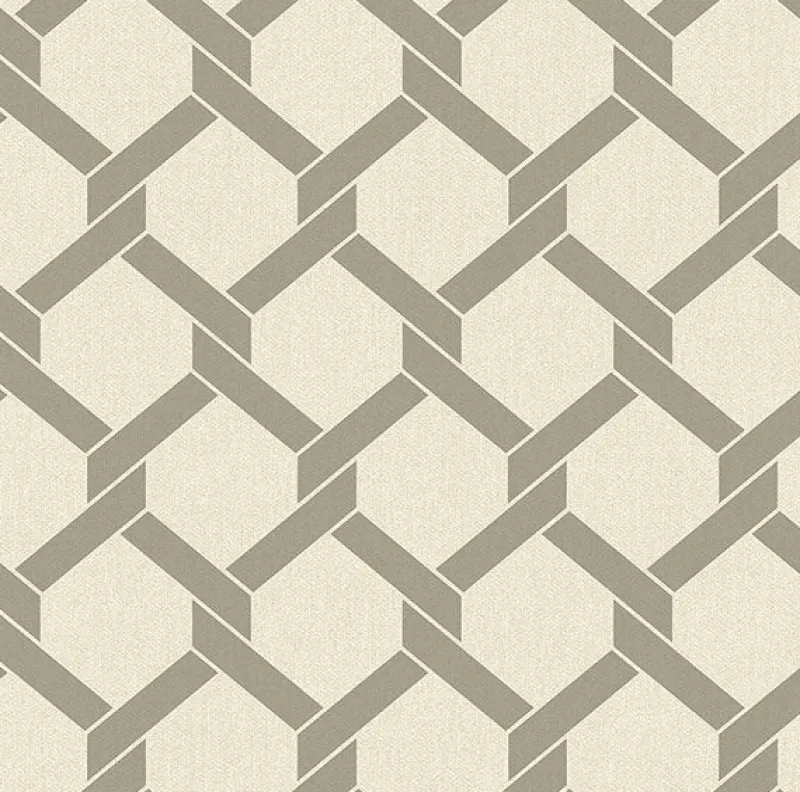 The classic trellis design has been given a contemporary, geometric update! The grey frame forms striking hexagons that are linked with a sharp twist, raised inks throughout infusing the entire design with subtle texture. Payton is an unpasted, non woven fabric backed vinyl wallpaper.