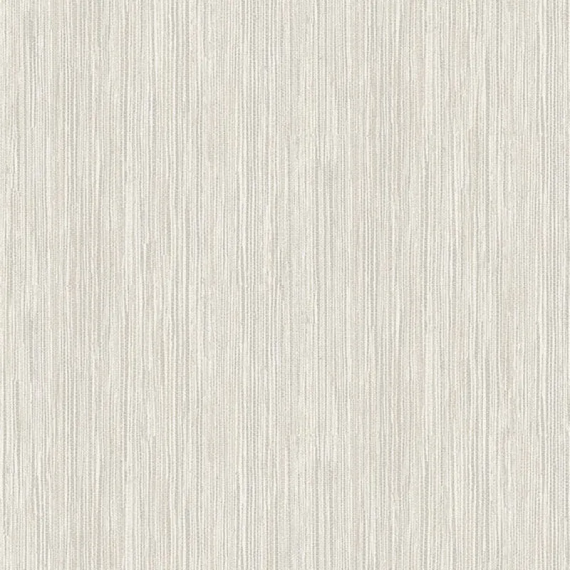 Add subtle depth to white walls with this creamy faux grasscloth wallpaper. The vertical strips are a gentle blend of white, silver, grey and golden beige accented by raised ink stitching. Justina is an unpasted, non woven fabric backed vinyl wallpaper.