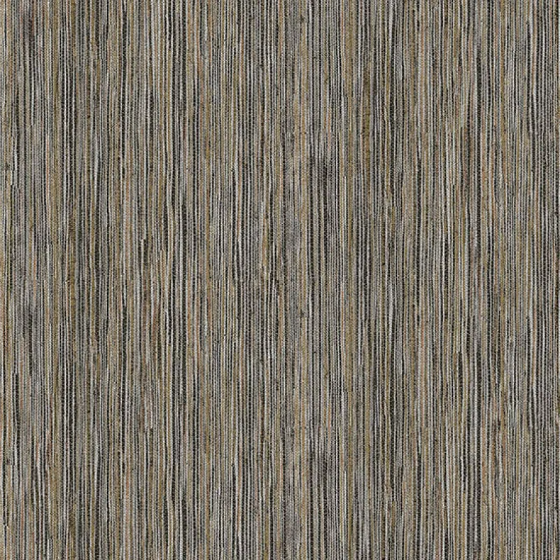 This faux grasscloth design is the perfect balance of bold and sophisticated! The vertical strips are a medley of charcoal, silver, copper and golden yellow tied together with silver raised ink stitching. Justina is an unpasted, non woven fabric backed vinyl wallpaper.