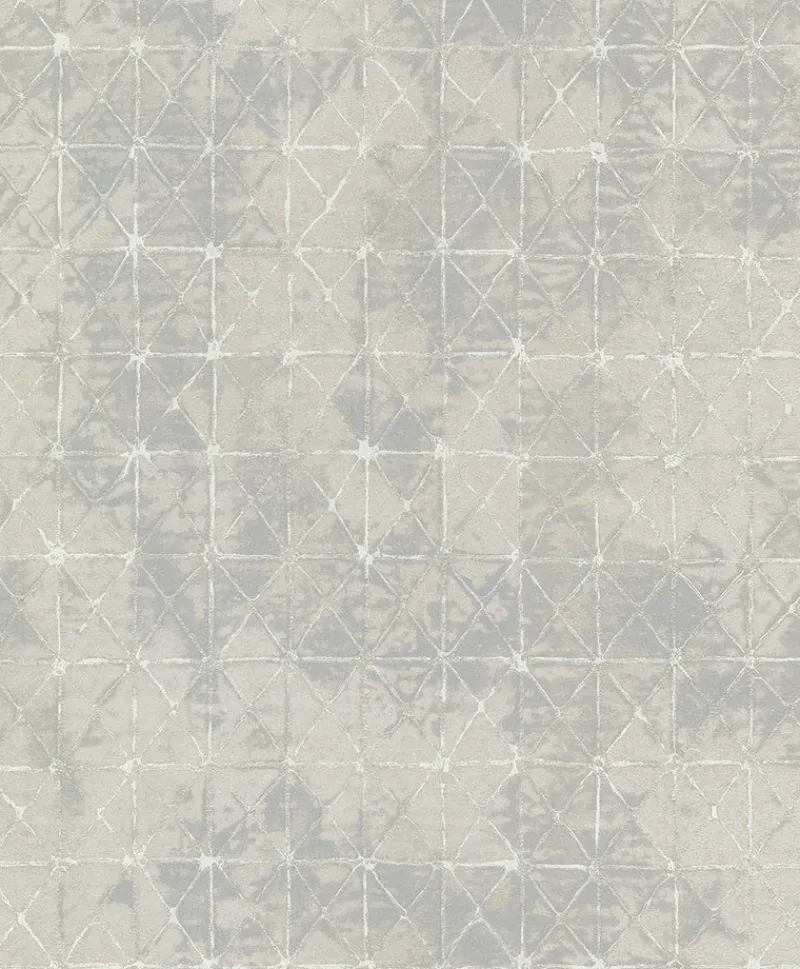Add instant charm to your home with this antique tile wallpaper. The Old World style is given a modern touch, the triangular segments a blend of silverly blue and light grey accented by off-white grout lines brushed with silver. Odell is an unpasted, non woven fabric backed vinyl wallpaper.