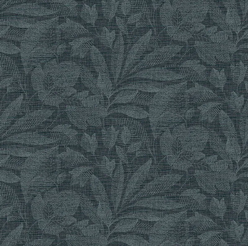 Bring cool, earthen sophistication to your walls with this botanical wallpaper. The variegated indigo backdrop looks like fabric and is overlaid with simple lined outlines of leaves in light blue. Lei is an unpasted, vinyl wallpaper.