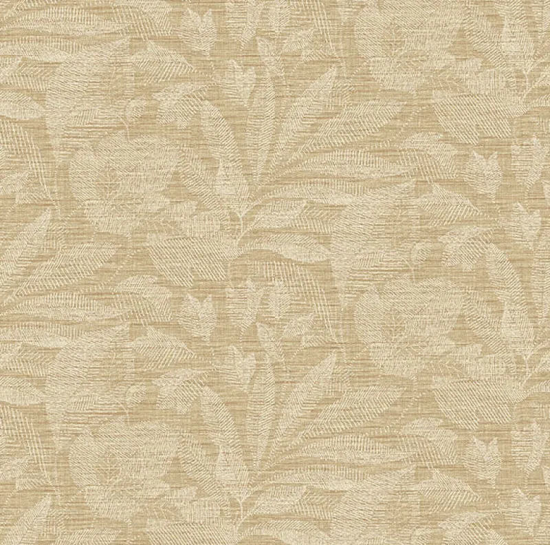 Enjoy autumn’s warm ambiance year-round with this lovely botanical wallpaper. Leaf silhouettes are formed with simple white lines, the variegated honey-brown backdrop given depth with the look of linen. Lei is an unpasted, vinyl wallpaper.
