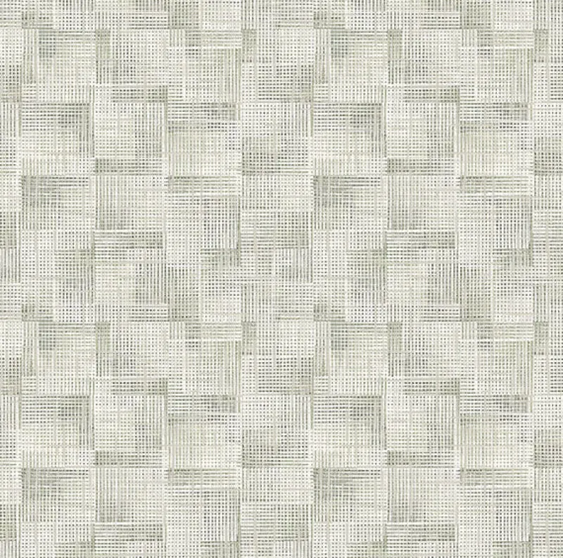 Enjoy modern texture with this compelling abstract wallpaper. Finely woven lattices in shades of white, light grey, and sage overlap to create a surface with rich depth. Ting is an unpasted, vinyl wallpaper.