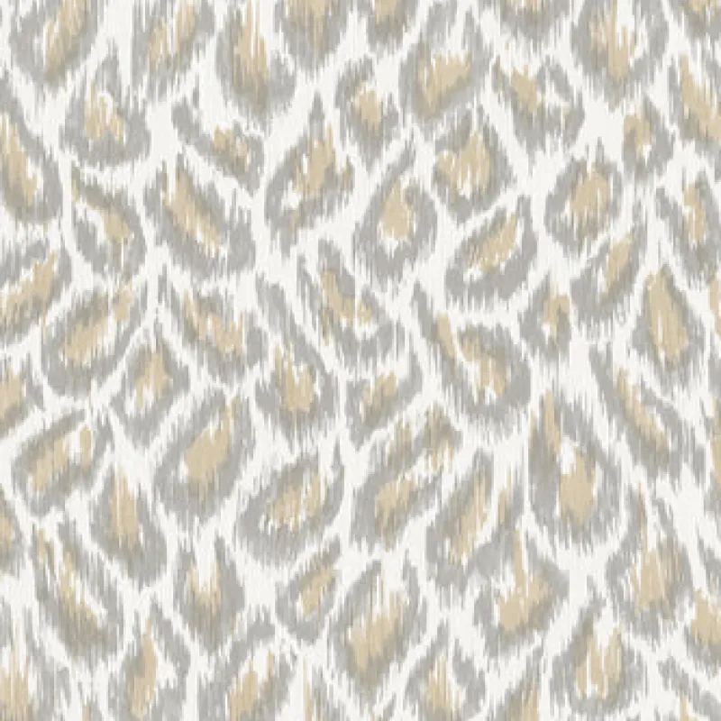 Enjoy a modern update to the glamour of animal print with this wallpaper. The pale yellow and grey ikat leopard spots are overlaid with strands of string for a soft and tactile textural accent. Electra is an unpasted, acrylic coated wallpaper.