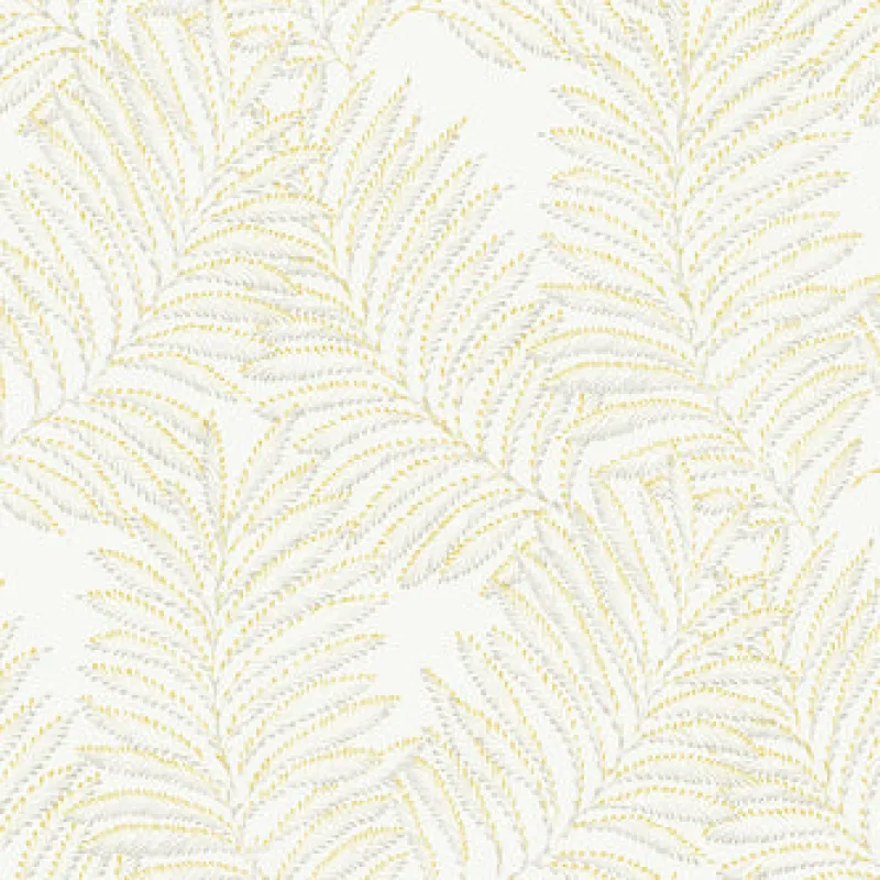 Surround yourself with the soothing influence of nature with this gorgeous botanical wallpaper. The large-scale ferns are delicately shaped by dashes of yellow and light grey ink against a soft white backdrop. Finnley is an unpasted, acrylic coated wallpaper.