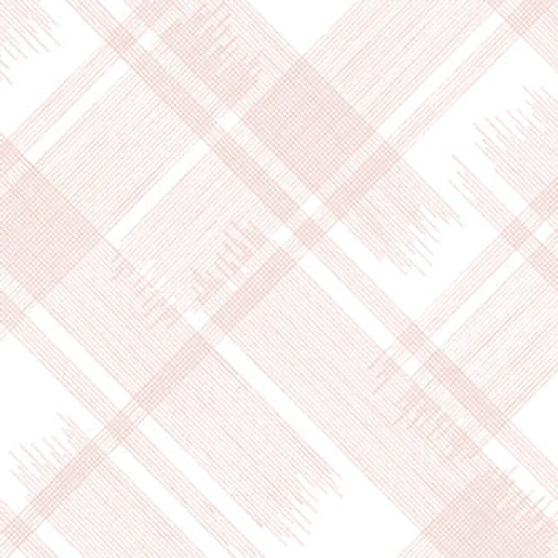 Baby pink and soft white combine in this modern plaid wallpaper. The clusters of thin pink stripes overlap and suddenly end, giving this bright and airy design extra movement. Zag is an unpasted, acrylic coated wallpaper.