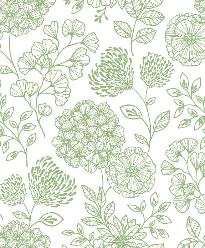 Bring earthen elegance to your interiors with this simple floral design. The delicate linework and sage green detailing adds an element of natural splendor. Ada is an unpasted, non woven wallpaper.