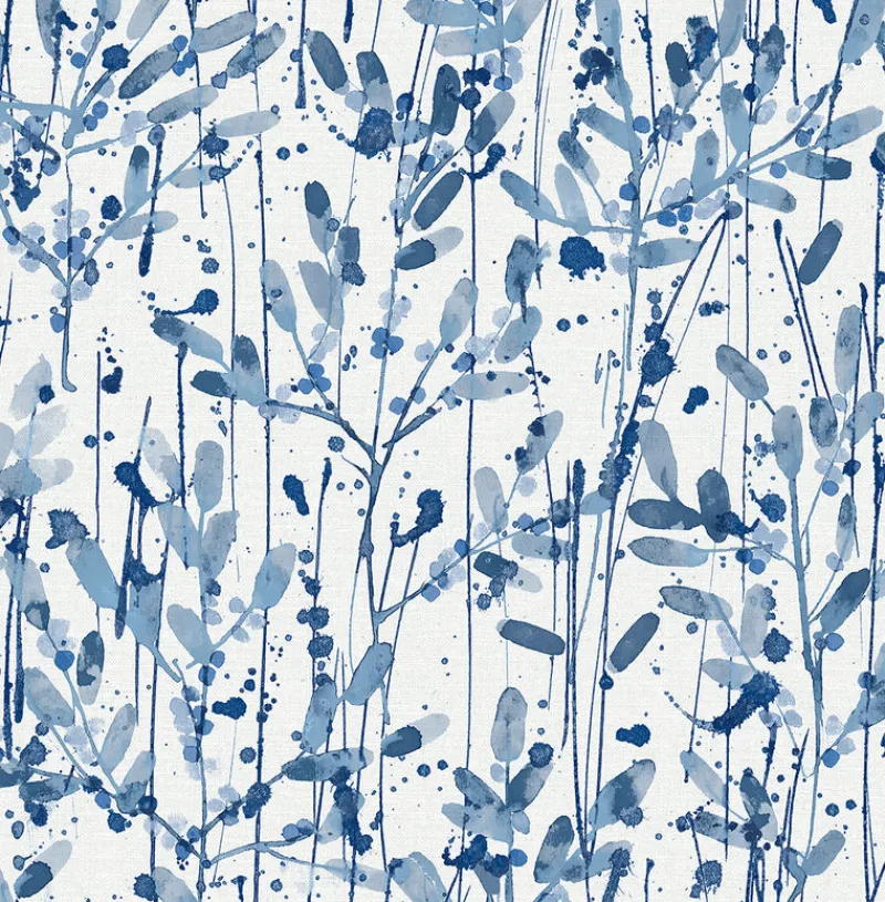 Create a soothing atmosphere with this botanical design. The rich blue tones and airy, abstract styling bring natural sophistication to your space. Leandra is an unpasted, non woven wallpaper.