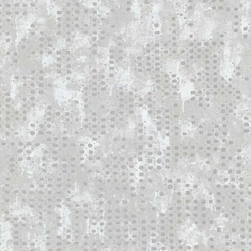This geometric design offers sophistication with industrial appeal. The mottled grey backdrop is studded with square, metallic blots of nickel finished with a matte shine. Felsic is an unpasted, non woven wallpaper.