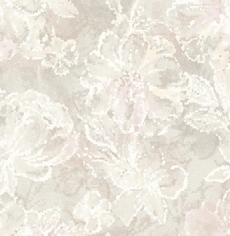 Awash with dashes of pink and dusty rose, this modern floral wallpaper enchants the eye. Raised ink details enhance the mosaic style of the pattern, while soothing greys balance the blush tones. Allure is an unpasted, non woven wallpaper.