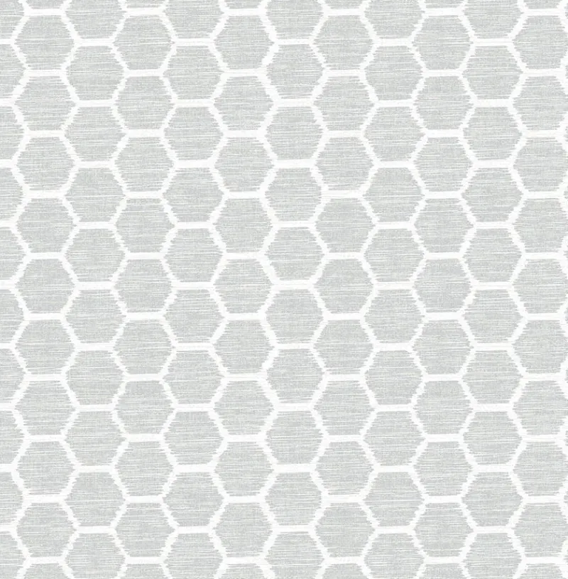 A striated texture gives this geometric wallpaper a hazy look, softening the normally hard edges of a honeycomb pattern. The cool-toned light grey is easy to style around. Aura is an unpasted, non woven wallpaper.