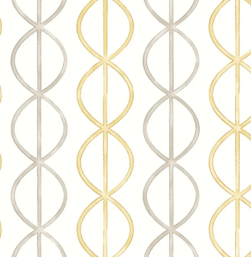 This subtle stripe wallpaper combines the beauty of a trellis pattern with the simplicity of a stripe for a modern look. Warm honey and cool grey make for a muted color palette of unexpected neutrals.
