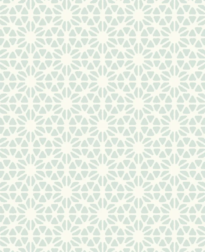 A pearlescent white background lends icy shine to this geometric wallpaper. The powder blue pattern is printed with raised ink for a tactile effect. Billie is an unpasted, non woven wallpaper.