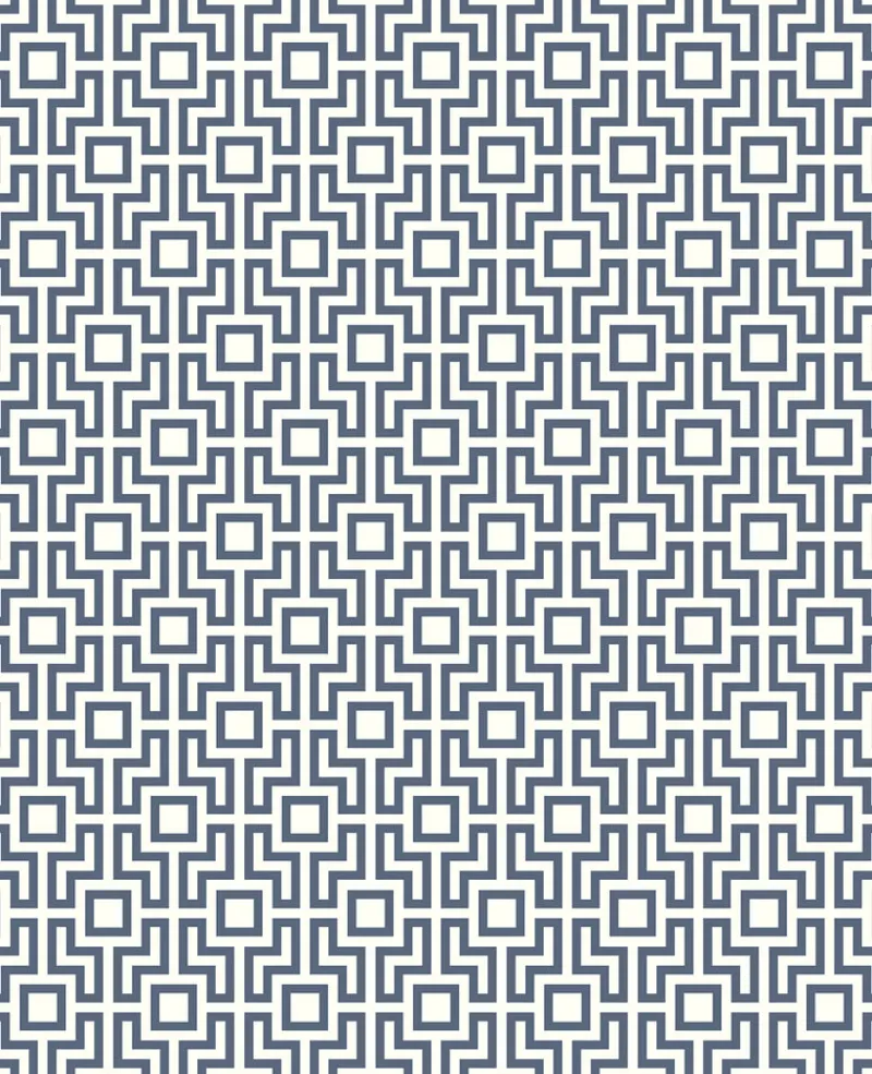 Capture the mystique of a labyrinth with this geometric wallpaper. The maze-like pattern is printed in raised blue ink over a white background. Boxwood is an unpasted, non woven wallpaper.