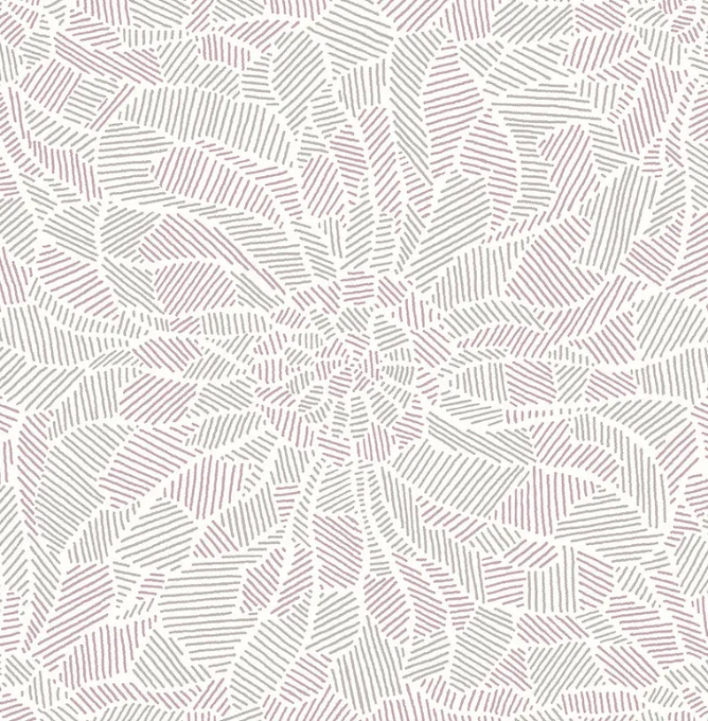 Alternating sections of lavender and heather purple lines come together to create a large-scale abstract floral pattern. The dynamic look of the wallpaper is enhanced with raised ink details. Daydream is an unpasted, non woven wallpaper.