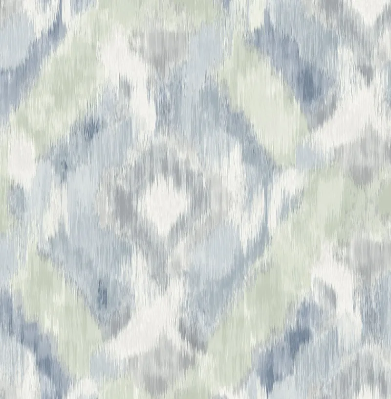 Adorn your walls in a stunning watercolor wash with this abstract pattern. A soft celadon accents the soothing blue tones. Mirage is an unpasted, nonwoven wallpaper.