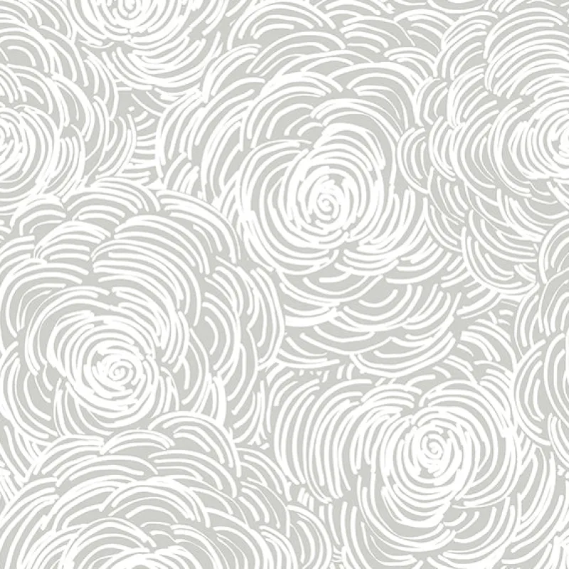 Contemporary roses collage together in this fun soft grey and white floral wallpaper.