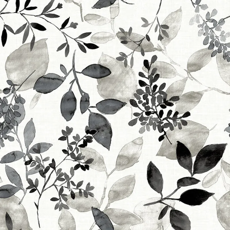 Black and grey watercolor flowers cover this simple floral wallpaper for a pretty natural element.