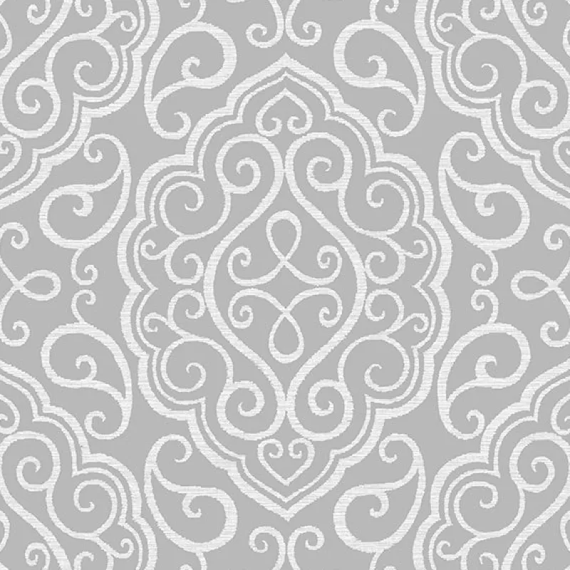 Light grey scrolls create a pretty tile pattern in this simply intricate neutral wallpaper.