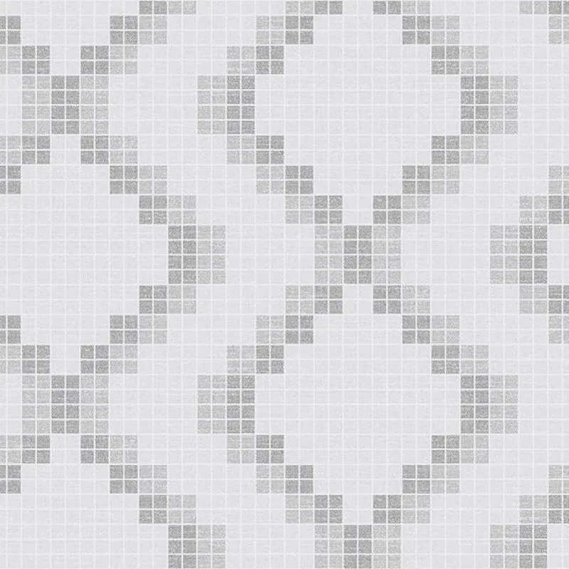 Pixelated squares create a larger contemporary and modern geometric Aztec pattern in this neutral grey wallpaper.