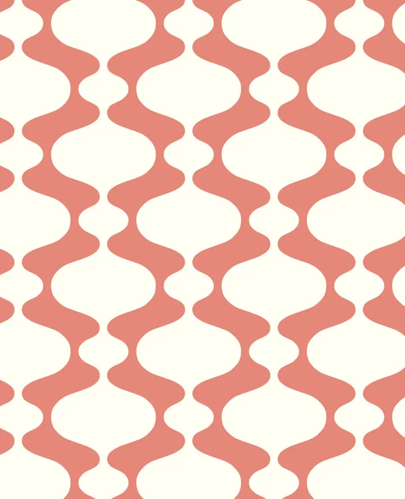 Cheerful coral will warm up a room. This undulating ogee designed is printed with raised ink for a block printed look. Emilio is an unpasted, non woven wallpaper.