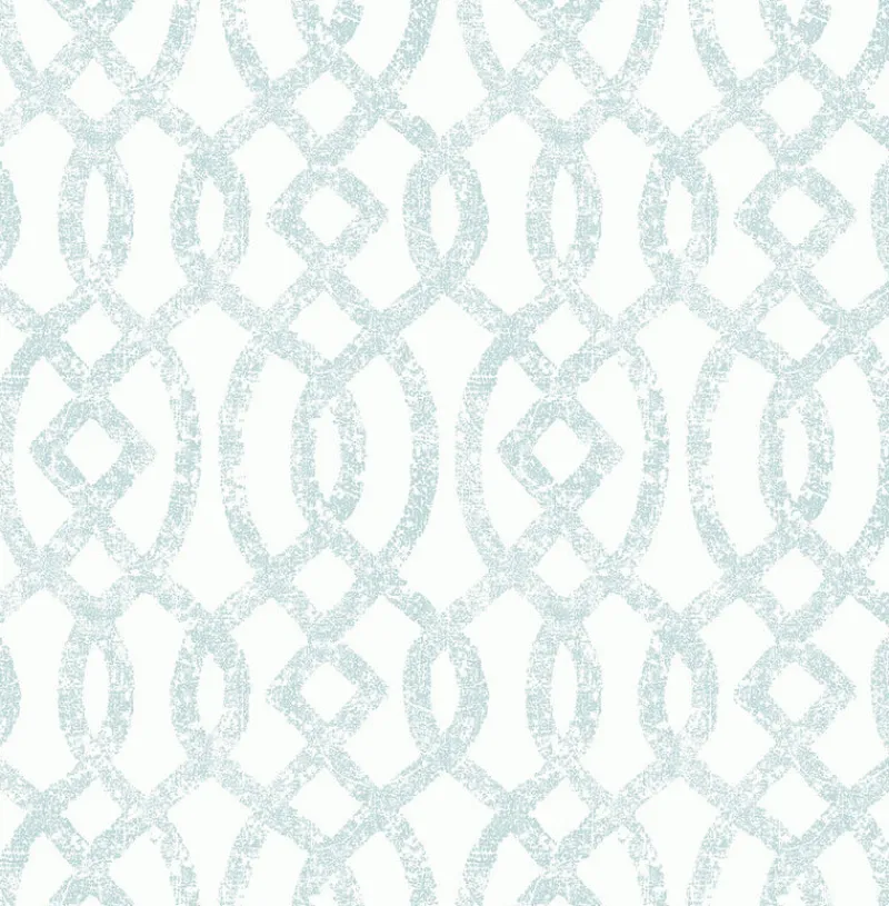Drawing on the carefree feeling of clouds drifting across a soft blue sky, this modern trellis wallpaper will bring tranquil happiness to a room. The raised ink pattern has a distressed texture, giving it a look reminiscent of block printing. Ethereal is an unpasted, non woven wallpaper.