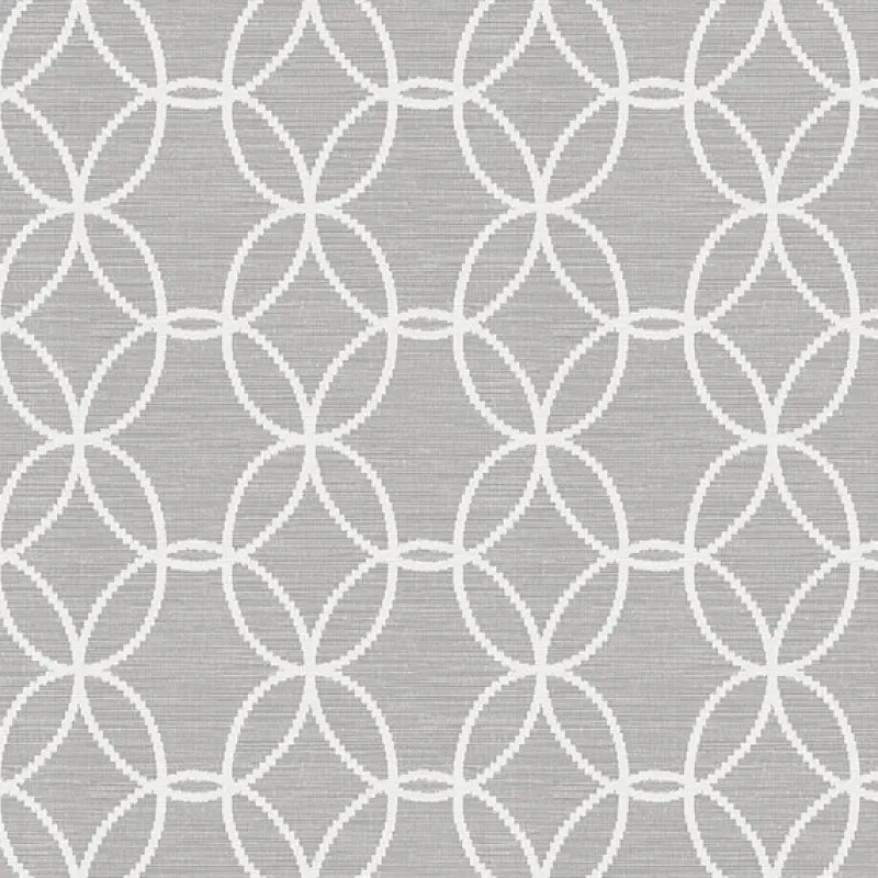 White circles overlap each other to make modern quatrefoils on a faux heathered grey background in this modern and contemporary wallpaper.