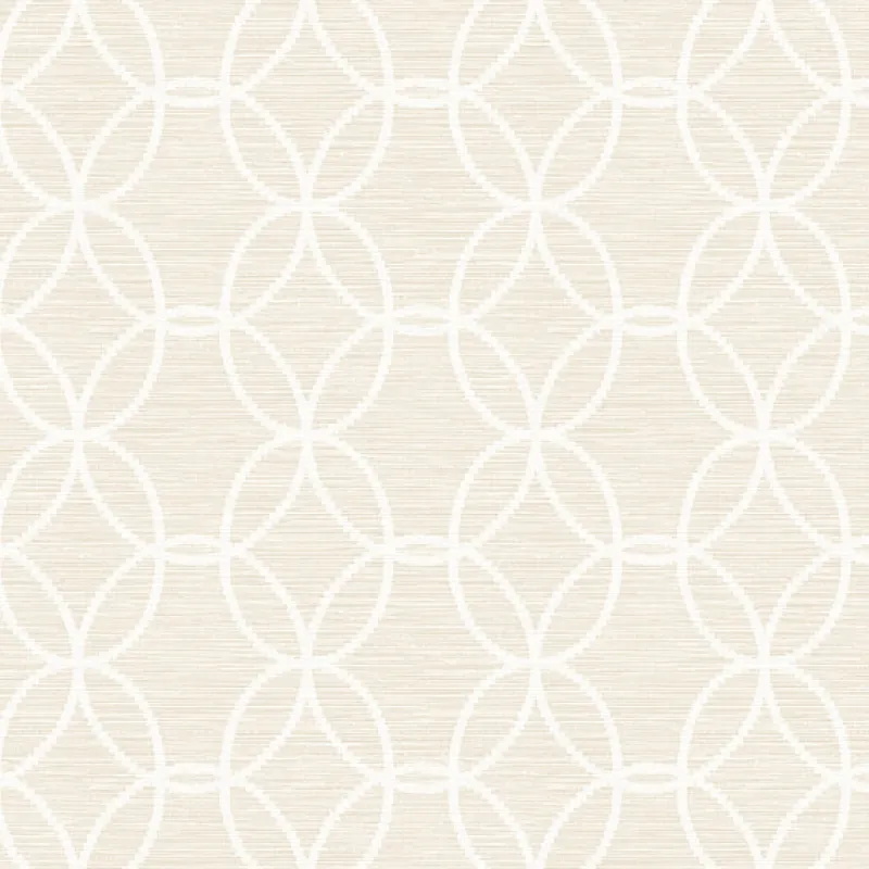 White circles overlap each other to make modern quatrefoils on a faux heathered cream background in this modern and contemporary wallpaper.
