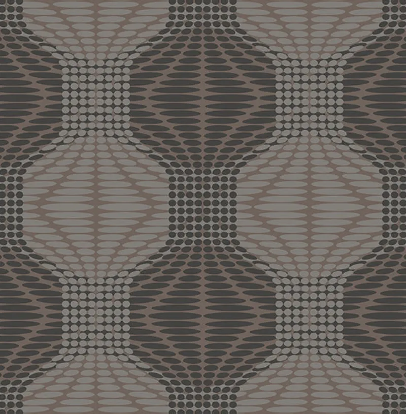 Metallic silvery grey and dark grey orbs give this geometric wallpaper a modern feel.