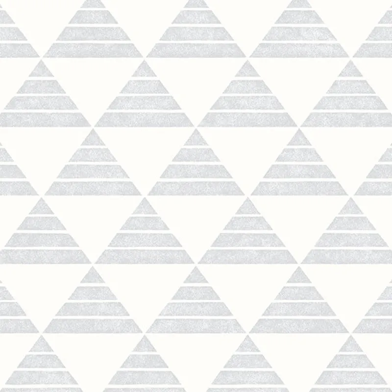 Grey and white triangles create a repeating pattern in this geometric neutral wallpaper for a contemporary touch.