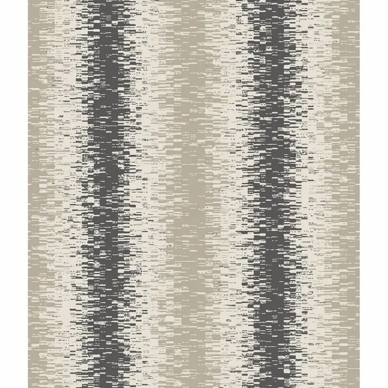 Abstract stripes are given a more organic feel in a taupe and dark charcoal color scheme. The pattern is printed with raised ink, adding texture and depth to the wallpaper. Quake is an unpasted, non woven wallpaper.