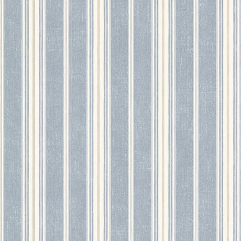 Bead board meets textile in this stripe wallpaper. The blue and taupe design is a classic combination. A woven effect adds dimension.