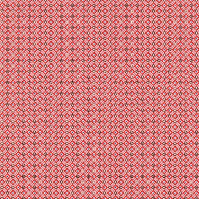 Entertained in a brilliant red hue, this eclectic geometric is an inspired sight. Interlocking rings that encase tiny florals create a scene that’s fresh, modern and fun.
