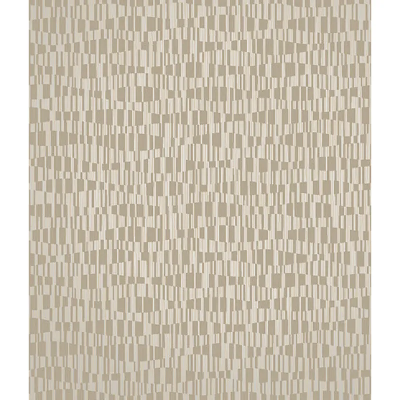This cocoa brown wallpaper is a modern neutral. An abstract wave print forms from offset lines and silver striped accents. Textured inks create further dimension.