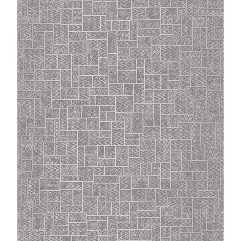 This chic plum colored wallpaper has a modern feel with metallic accents and raised ink texture. Tiled rectangles pop with a tiny wave print.