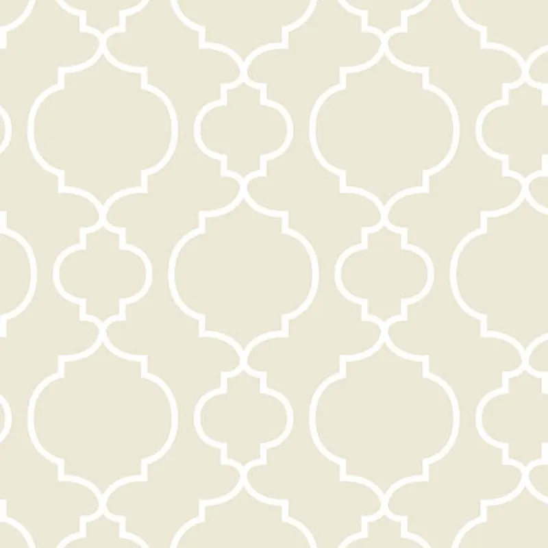 A contemporary wallpaper that can work with any number of home décor styles. From bohemian to preppy, this quatrefoil design can match with it’s taupe background and white lines. The four inch and six inch shapes are just large enough to create a large print.