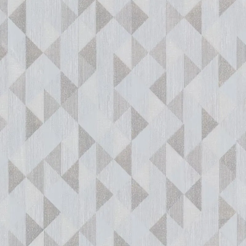 A fresh and contemporary geometric. This mod triangle pattern boasts an assortment of luxe finishes and textures. Metallic silver and matte raised inks in textile finishes make this grey wallpaper anything but ordinary.