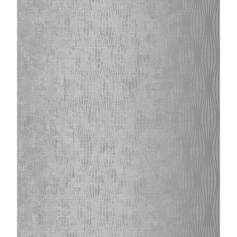 Shades of grey mesh with metallic silver in this chic wallpaper. An undulating wave pattern flashes silver beneath raised inks. A mottled texture adds a further layer of intrigue to this wallpaper.