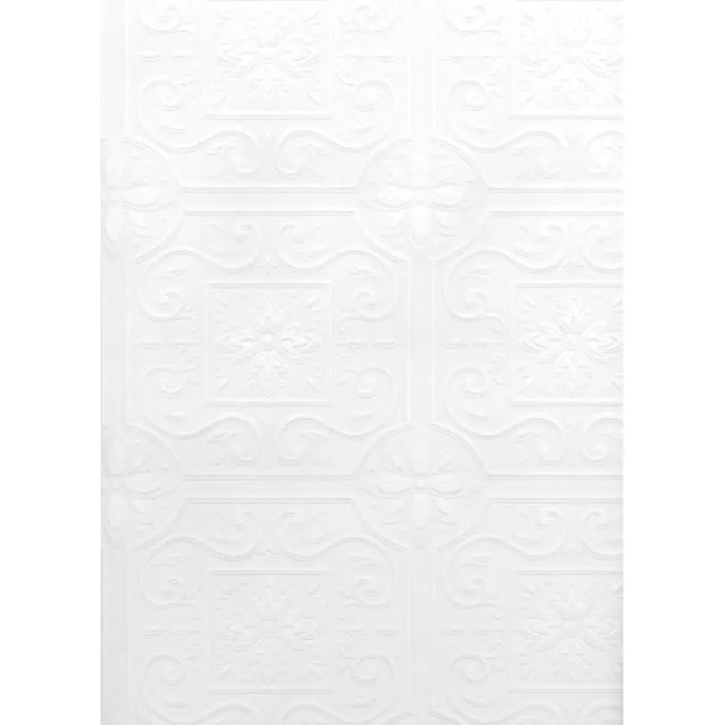 Create a stunning tiled look on your walls with this paintable wallpaper. This textured relief print is reminiscent of Spanish and ceiling tiles with beautiful floral medallions and flowing scrolls. Customizable in the color of your choice.