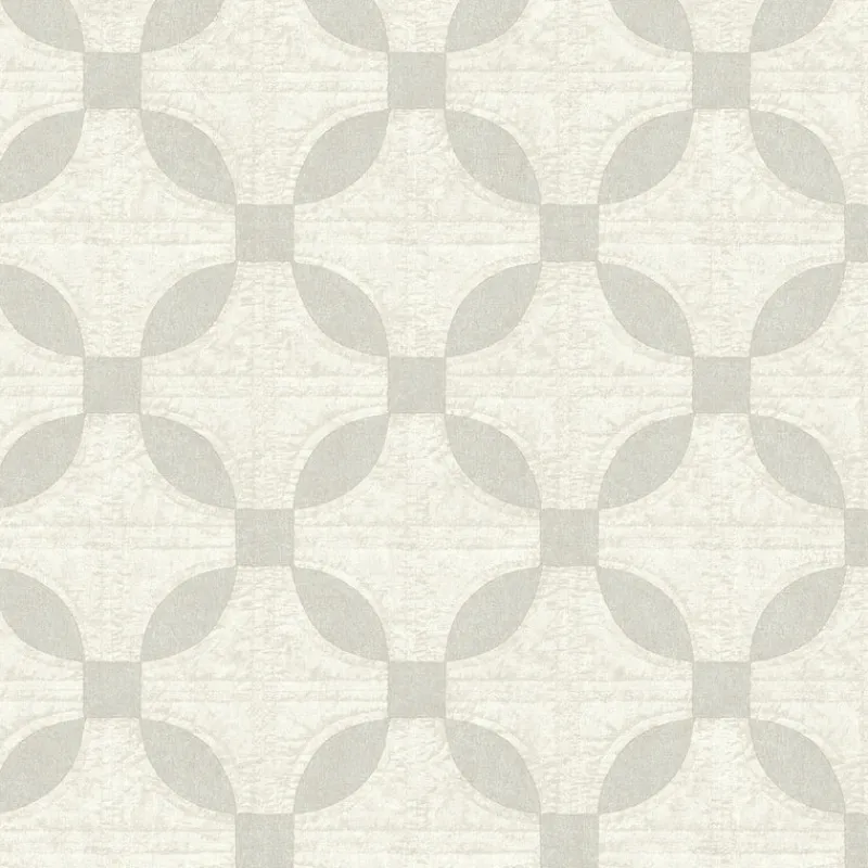 Bright and clean, this geometric wallpaper resembles a quilt. Its light grey and off-white hues will brighten up your room, while its faux fabric design will add dimension to your walls. Justice is a prepasted, coated heavyweight paper wallpaper.