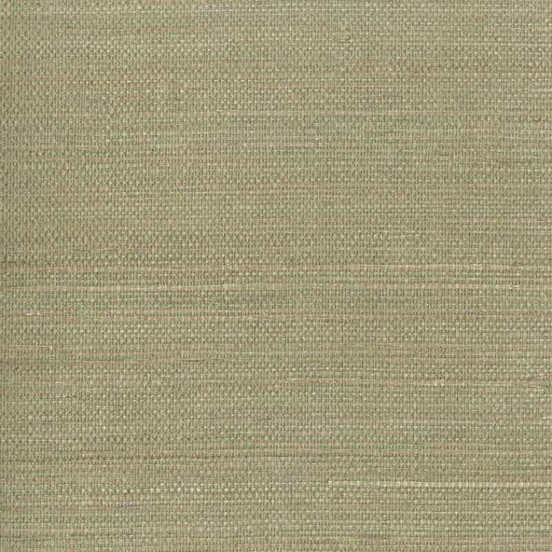 An unexpected mint green modernizes this traditional grasscloth wallpaper. A taupe grey weave centers the design and adds thin stripes of texture.