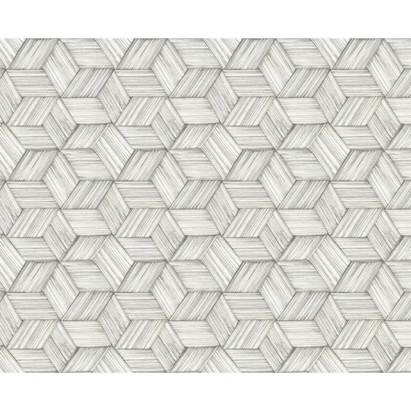 Tiny light grey stria and stripes weave a larger geometric pattern in this braided looking wallpaper.