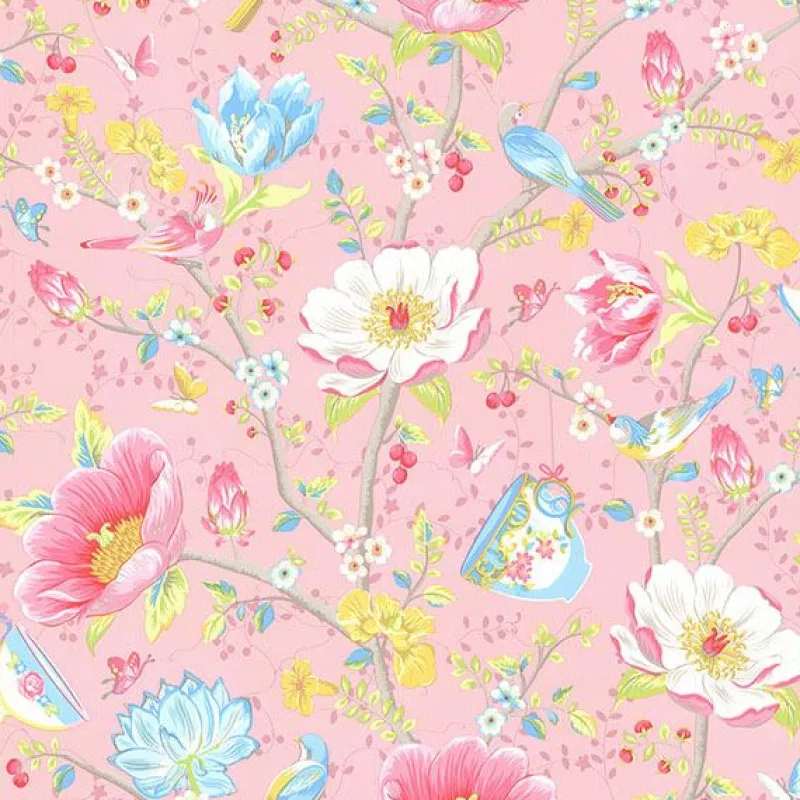 Transporting you into a magical fairytale, this charming wallpaper by Eijffinger is filled with a sweet essence. A flowering tree branch coupled with birds and teacups add enchantment to any room in your home.