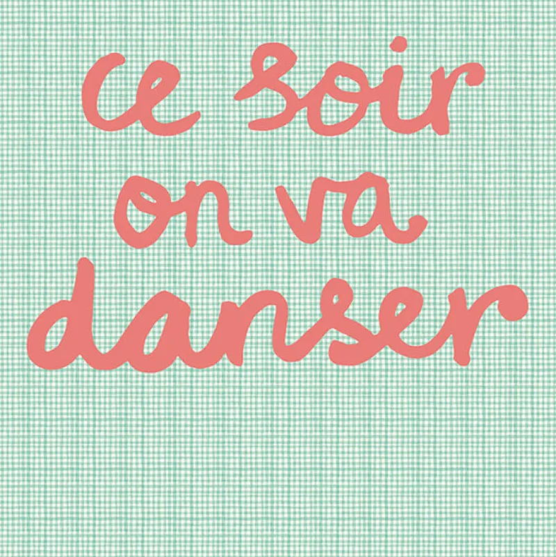This sassy mural will make you want to dance! The large-scale French phrase is written in script over a mint plaid background. Comes in 6 panels that measure 9 feet 2 inches tall x 9 feet wide when assembled.