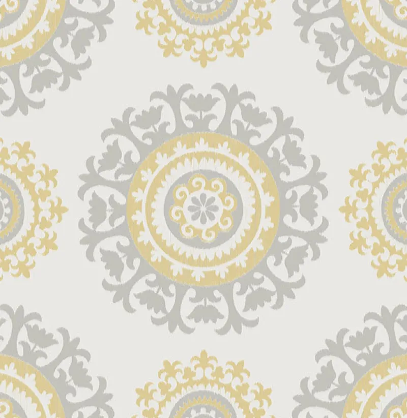 Add a splash of color to your walls with this Suzani peel and stick wallpaper. A golden honey hue is accented by a pale grey, creating a warm and modern color palette. This peel and stick wallpaper is easy to use and wont damage your walls. Comes on a 20.5 in x 18 ft roll.