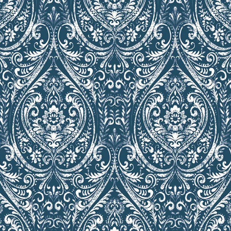 Fit for a bohemian boutique, this blue and white damask pattern is embellished with intricate scrolls and a lightly distressed texture effect. No adhesive or lengthy installation is needed for this modern peel and stick wallpaper.