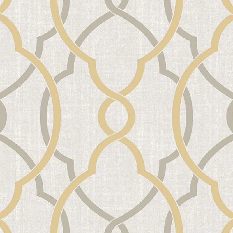 A woven textured background sets an elegant tone for this geometric peel and stick pattern in taupe and a sophisticated shade of butterscotch yellow. Perfect for a kitchen, dining room, or any space in your home, this contemporary wallpaper is easy to apply and even easier to remove.
