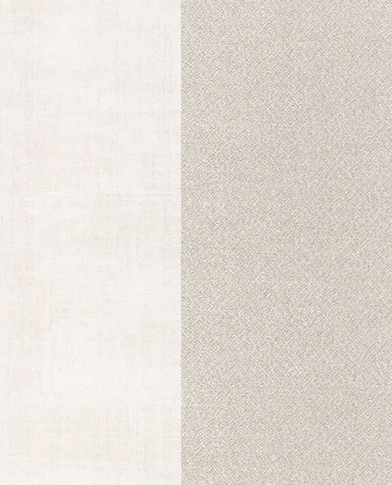 A textured stripe wallpaper. This wide print alternates between a speckled texture and a metallic weave. Stripes measure 10.25 inches wide.